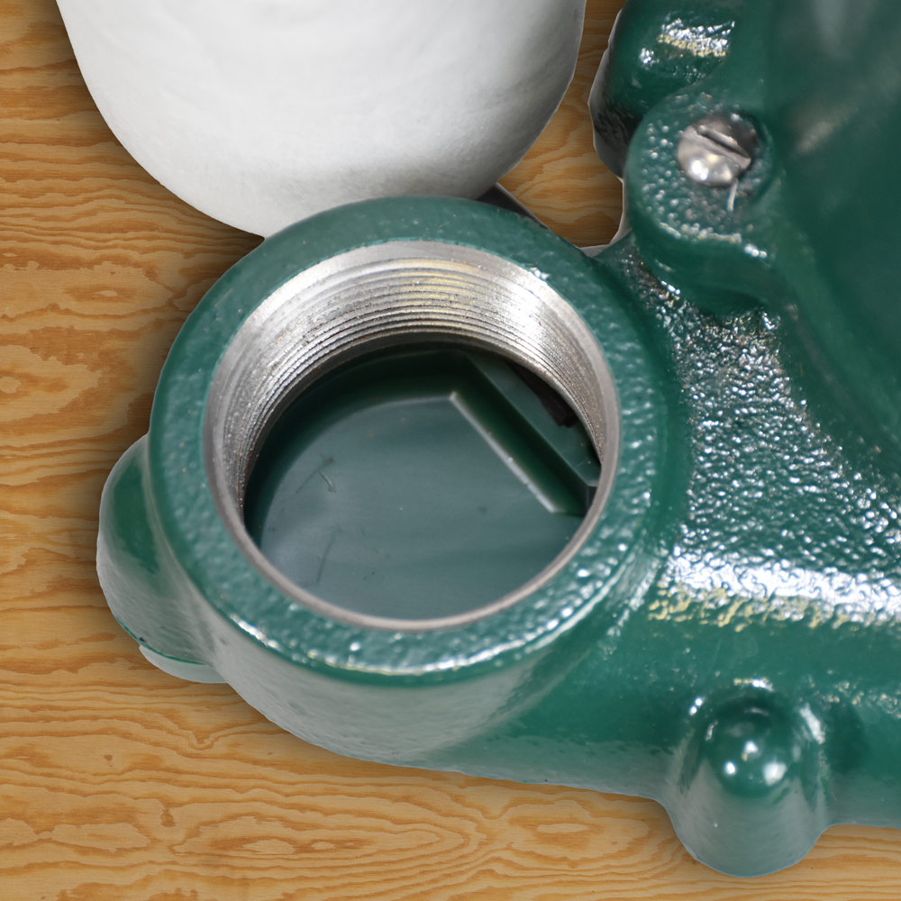 The Model 53’s switch case, motor housing, and pump housing are each constructed of cast iron. The corrosion resistant engineered plastic vortex impeller has a smooth surface allowing water and solids to pass freely through the pump. The pump’s identification tag, float guard, handle, switch arm, and hardware are made of non-corrodible stainless steel. This attention to detail ensures that the Model 53 is able to withstand the most demanding basement sump applications.
