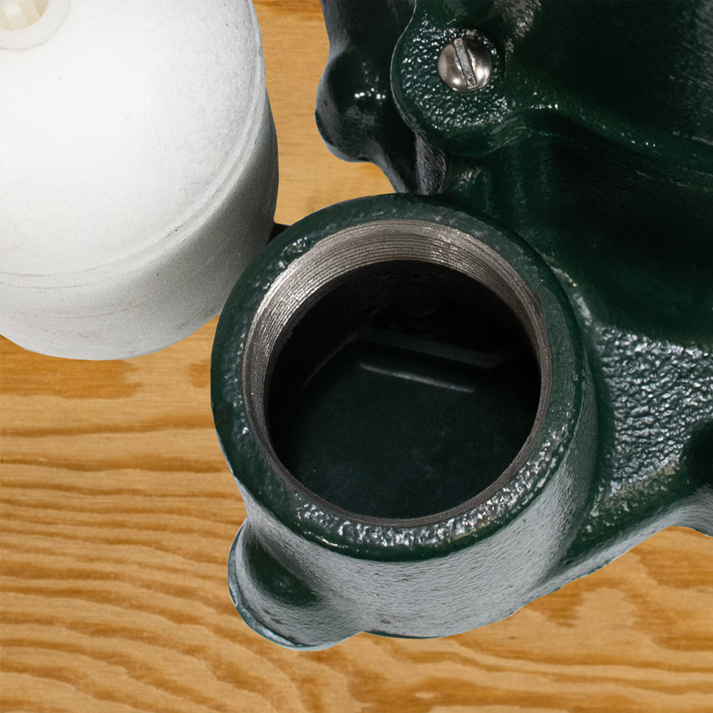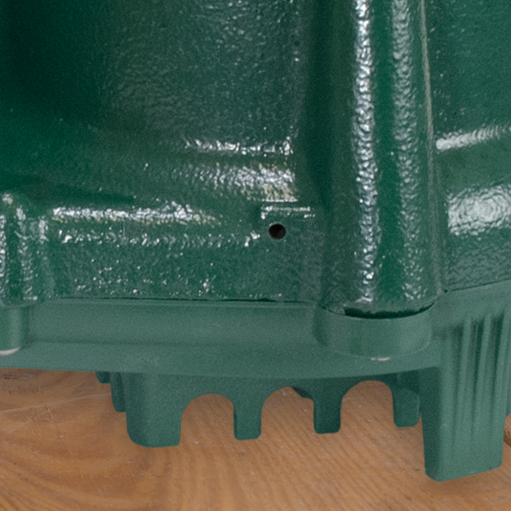 The Model 98’s switch case, motor housing, and pump housing are each constructed of cast iron. The corrosion resistant engineered plastic vortex impeller has a smooth surface allowing water and solids to pass freely through the pump. The pump’s identification tag, float guard, handle, switch arm, and hardware are made of non-corrodible stainless steel. This attention to detail ensures that the Model 98 is able to withstand demanding, high flow basement sump applications.