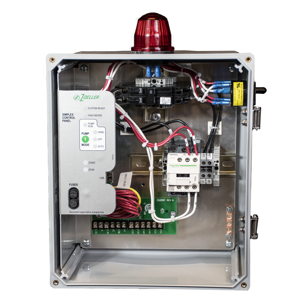 Our Simplex Pivot Control Panel for 115/200/230 V, 1 Ph lift station pump applications ranging from 7-15 Amps. Now you can get Zoeller quality in the whole system by pairing our pumps with our highly featured Pivot Control Panel.